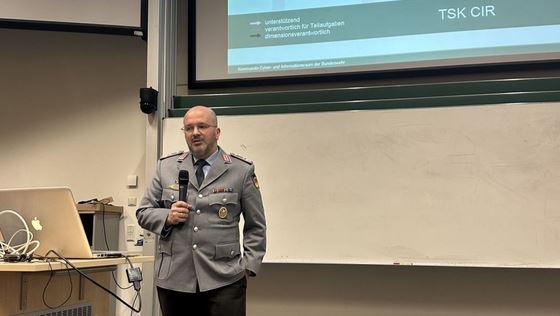 Die neue Teilstreitkraft Cyber- und Informationsraum wurde abschließend von Herrn Oberstleutnant Peter Leffler vom Kommando Cyber- und Informationsraum der Bundeswehr vorgestellt, die für den digitalen Raum zusätzlich zu den bekannten Teilstreitkräften Heer, Luftwaffe und Marine eingeführt wurde. Es wurde deutlich, dass die Bundeswehr die neuen Herausforderungen in ihrer Organisation aufgegriffen hat.